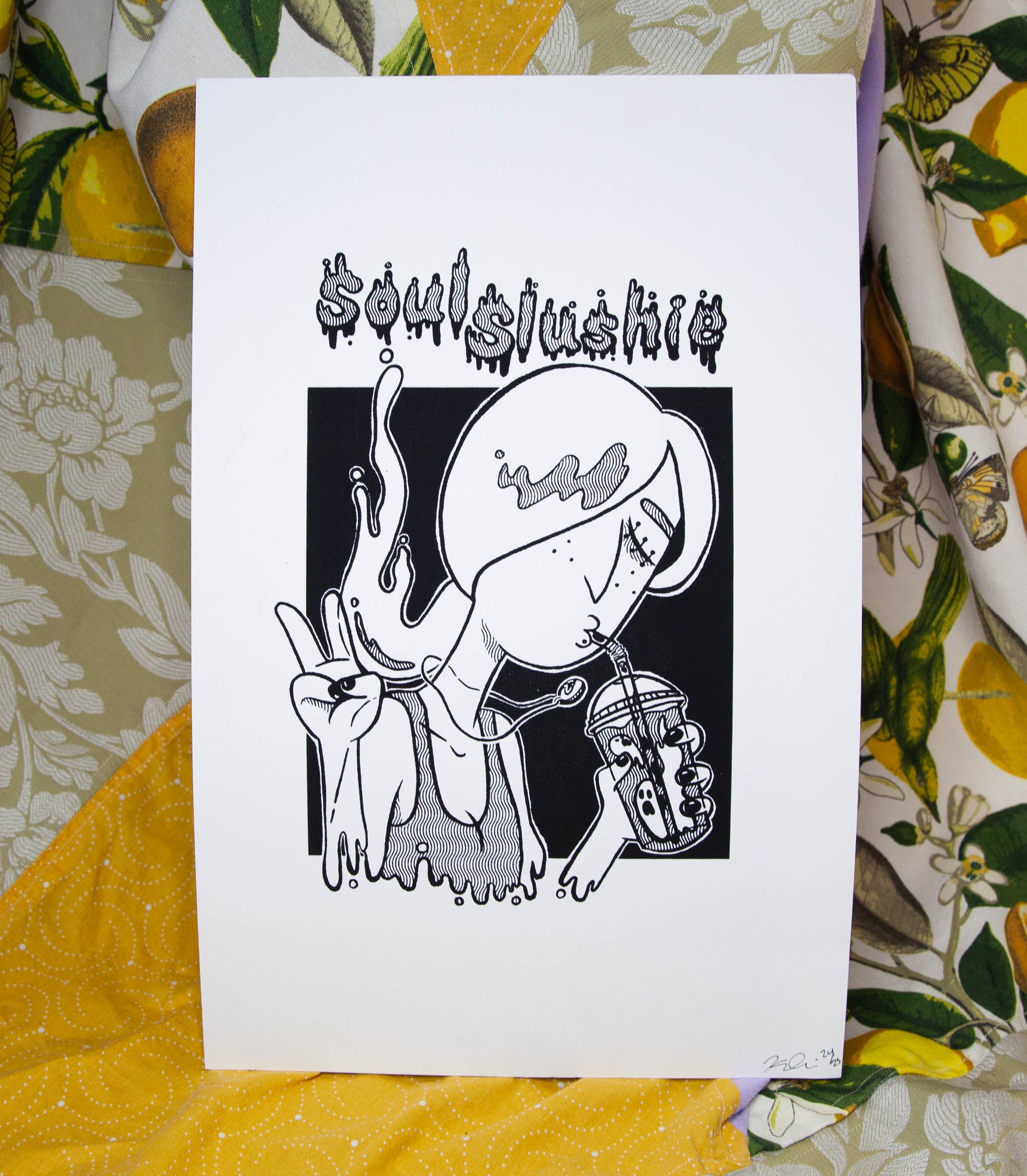 This Soul Slushie screen print, featuring Gloria from Graveyard Shift, is a limited run of 25! We won’t make any more after this!